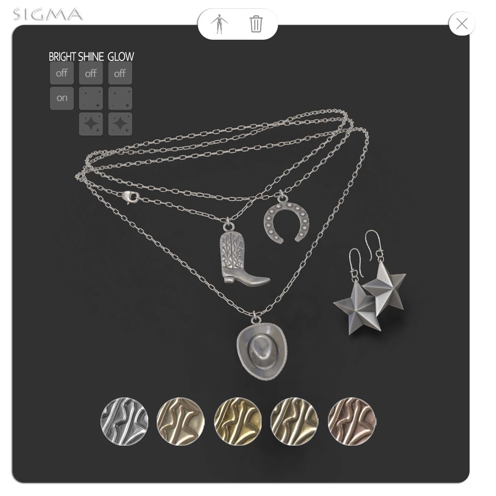 Charms chain necklace. Copy and mod. Several metal shades in the HUD.