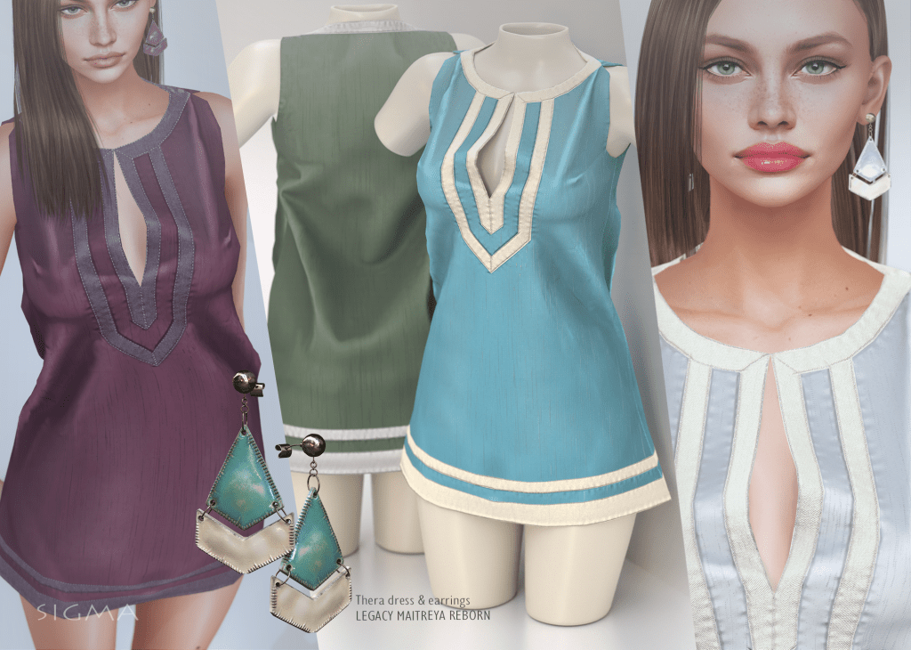 Dress sized for Legacy (classic & perky), MaitreyaX (classic & petite) and Reborn bodies. The earrings are unskinned.